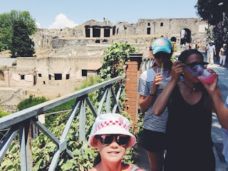 After our overnight ferry, we awoke in Bari and drove off the ferry and directly to the Basilica of St. Nicholas. Bari is a port town and St. Nicholas is the patron saint of of sailors and special to our family…we celebrate the Feast day of St.Nicholas with peppermint bark every year, so, we prayed at the cathedral (dating back to Norman times) and then took off for Pompeii. We took the main road out of Bari which was part of the original Roman road, the Appian Way, dating from the second century AD. The Via Appia was one of the earliest and strategically most important ancient Roman roads and was called “queen of the long roads." We drove past Naples and Mount Vesuvius and arrived in Pompeii in time for lunch (had some Lacryma Christi or "tears of Christ” wine) and a great tour which lasted three hours-- the Coliseum, the Forum, Temple of Apollo, several villas, and store fronts. Then we drove to Caserta which is a town just north of Naples and like Naples dangerous and decadent. We stayed in a Villa that had a pool, so we all cooled off from our hot tour of Pompeii and had a nice dinner with lots of laughs; the next morning we were up early to be first in line at the Palace of Caserta which was built for the Bourbon king of Naples. It is the largest royal residence in the world and was inspired by the Palace of Versailles. We had the entire "piano reale," the King's floor to ourselves and it was magnificent. We biked up to the top of the baroque garden fountains (12 of them), up to the English gardens which were less formal but equally beautiful, with grottos and niches.